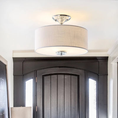15″ Marc Metal/Linen LED Semi-Flush Mount Chrome (Includes Energy Efficient Light Bulb) – JONATHAN Y
