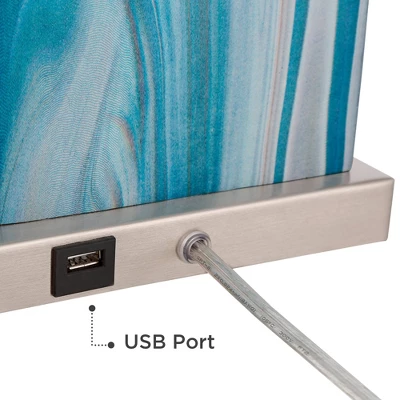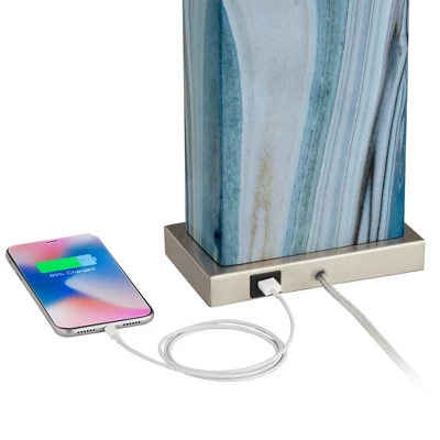 360 Lighting Connie Modern Table Lamps 25″ High Set Of 2 Blue Faux Marble With USB Charging Ports LED White Shade For Bedroom Living Room House Desk
