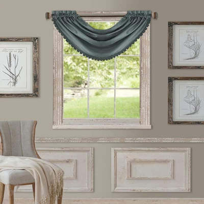 The All Seasons valance offers an elegant silk look and room darkening benefits. A versatile color palette makes this window valance perfect for any décor. Waterfall valance features scalloped decorative trim and a beautiful drape. Matching curtains sold separately. 100% polyester. Sold as a single valance, multiple valances needed to create layered look. Easy care, machine washable.