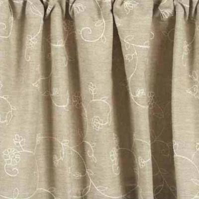 The Candlewicking Taupe Valance features an all-over cream embroidery pattern reminiscent of heirloom candlewicking, offered in a traditional taupe color. A delightful addition to your country home decor..