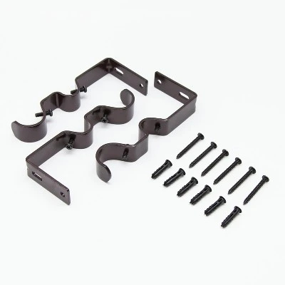 - Steel double rod in weathered brown or silver luster finish with decorative finials and matching mounting hardware