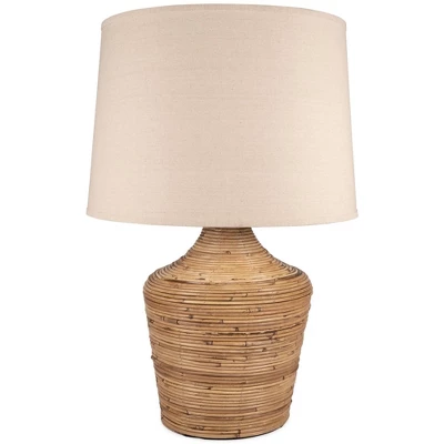 Add natural texture and warmth to any room with this table lamp. Bring a touch of beachy flair to your coastal cottage decor or use it as an organic counterpoint to a modern room. Light and airy natural rattan is offset with a crisp fabric drum shade to keep this boho-chic piece fresh.