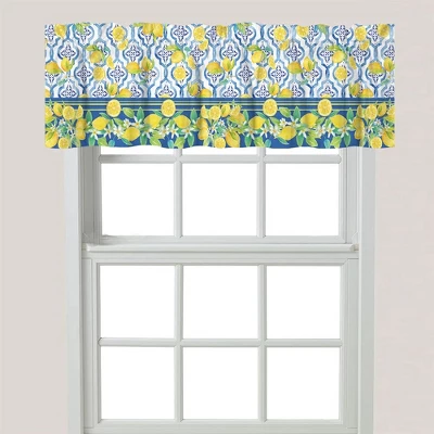 Add some zest to your kitchen decor with the “Lovely Lemons” window valance. Sunny yellow lemons are sprinkled throughout the curtains, complemented by a bold blue background and border. With vivid color and pattern, this set will brighten the entire room.