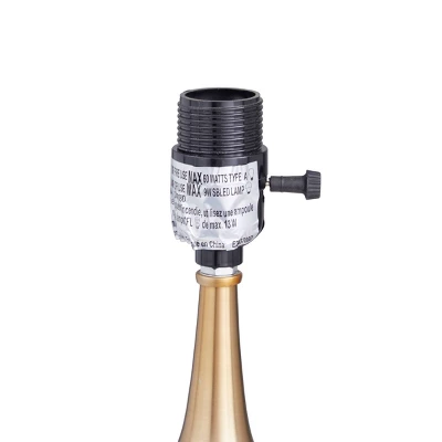 - Delicate blown glass base flaunting a champagne glass-shaped outline flatter this buffet lamp for an ethereal beauty