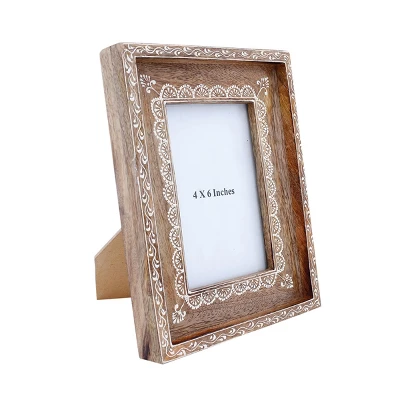 Decorate your treasured moments with the delightful trim of the 4 x 6 inch Henna Border Wood Picture Frame by Foreside Home & Garden. The raw, natural aesthetic of the wood balances beautifully with the soft and elegant accents, enhancing the nostalgic appeal of your 4″ by 6″ photos. Made in India.