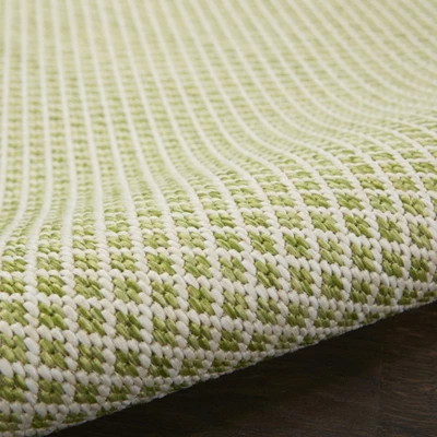 With its striking geometric pattern, this Courtyard Collection indoor/outdoor rug exudes contemporary style. Its subtly textured surface is crafted in classic tones for a seamless complement to modern settings. Machine made polypropylene flat weave stands up to heavy traffic and is easy to clean: just hose-rinse and air dry.