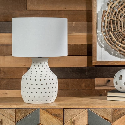 With this stylish and crisp table light, you can calm the ambiance in your home. The pegged base gives the piece an airy feel that works well in a modern or contemporary setting. The drum shade complements the lamp’s scale, bringing the design together. The shade’s linen fabric diffuses light well, providing useful, warm illumination. NuLOOM includes an LED bulb, allowing your lights to take center stage with ease.