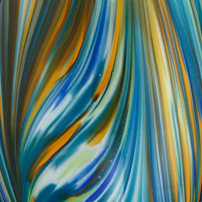 Swirling colors offer a hypnotic effect that transforms this glass table lamp into a functional work of art. Possini Euro Design® styled this elegant lamp from hand-blown art glass and touched it up with a metal base and accents. A simple on-off switch makes operation a breeze while the included clear, plug-in dimmer allows for easy adjustment of lighting levels.